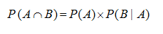a probabilidade de ocorrer A e B é dada pela probabilidade de ocorrer A multiplicada pela probabilidade de