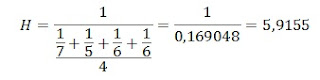 tamanhos dos grupos são 7, 5, 6, 6. Para calcular a média harmônica H, aplique a fórmula: