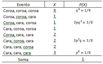 tentativas) idênticos e independentes. Em cada evento, são três os resultados