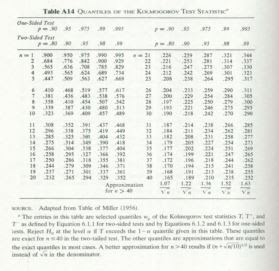 significância a se T exceder o quantil w(1-a) dado na Tabela de quantis para a estatística de teste de Kolmogorov, que