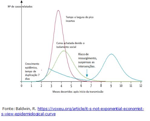 Na fase inicial, a expansão do COVID-19 pode até ser vista como uma exponencial. No entanto, essa expansão não segue um modelo exponencial. As epidemias acabam com o esgotamento dos suscetíveis ou, como se diz, com a imunidade do rebanho. O número de novos casos aumenta rapidamente, atinge um pico e depois diminui. Isso é chamado de curva epidemiológica, um gráfico estatístico usado para mostrar o início e a progressão de uma doença. Os dados da China e da Coréia do Sul corroboram essa ideia.
